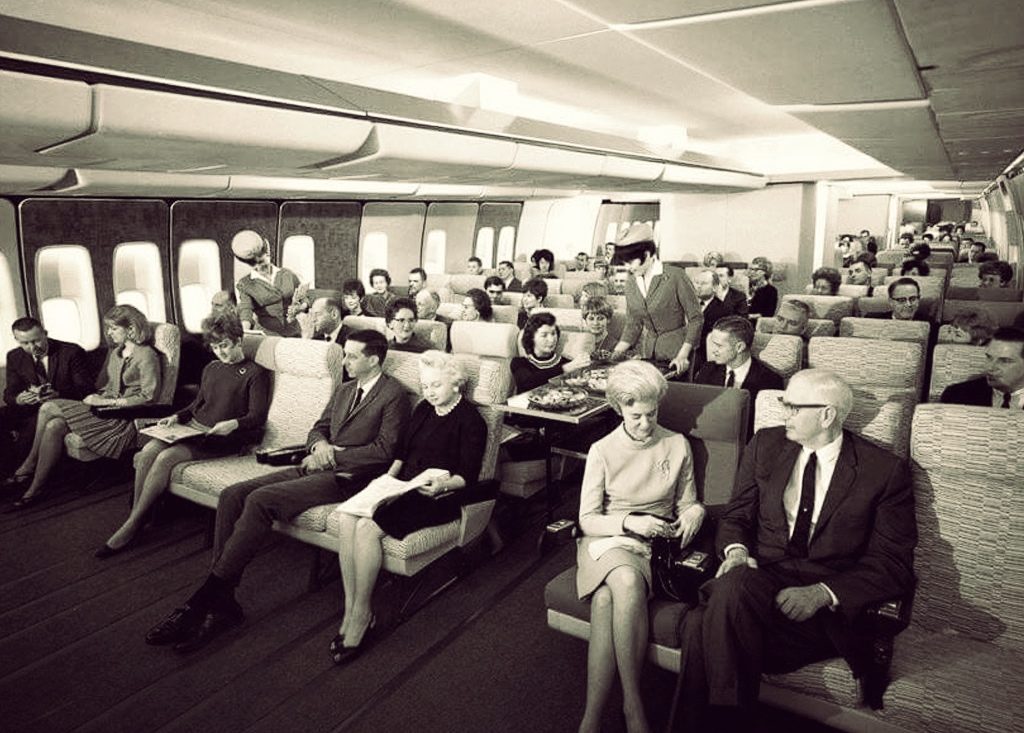 Aşağıdaki fotoğraf altmışlı yıllarda Pan-Amerikan Havayollları’na ait yolcu uçağının ekonomi sınıfı koltuklarını gösteren bir karedir. Pan-Am şirketi dünyada ilk okyanus aşırı havayolu taşımacılığını gerçekleştiren havayolu firmasıydı. Ne yazık ki 1991 yılında iflas etti. Fotoğrafın üzerinden yaklaşık yetmiş yıl geçmiş . Günümüzde uçuş sırasında dahi internete girebilme imkanı varken ( her ne kadar dünyanın değişen ekonomik dinamikleri, rekabet, maliyet gibi unsurların varlığını kabul etsek de ) diğer taraftan ülkemizde ( tabi dünya örneklerinin de ) hizmet veren havayolu firmalarının ekonomi sınıfı koltukları da insanın aklına geliyor doğrusu.