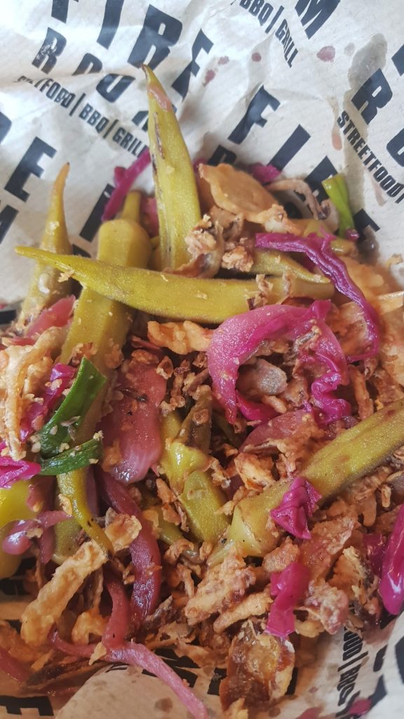 Gelelim yemeklere. Biz Fireroom burger, sosis ızgara, kaburga taco ve bamya turşusu denedik. Denediğimiz tatların hepsi de çok lezzetliydi, piyasada yediğimiz benzerlerinden bir tık üstteydi. Burada bamya turşusuna ayrı bir paragraf açıyorum hayatımda ilk defa bamya turşusu yedim ızgara olarak yapılmıştı, çıtır soğan ve kırmızı lahana turşusu karışımı ile nefisti gideceklere tavsiye ediyorum.