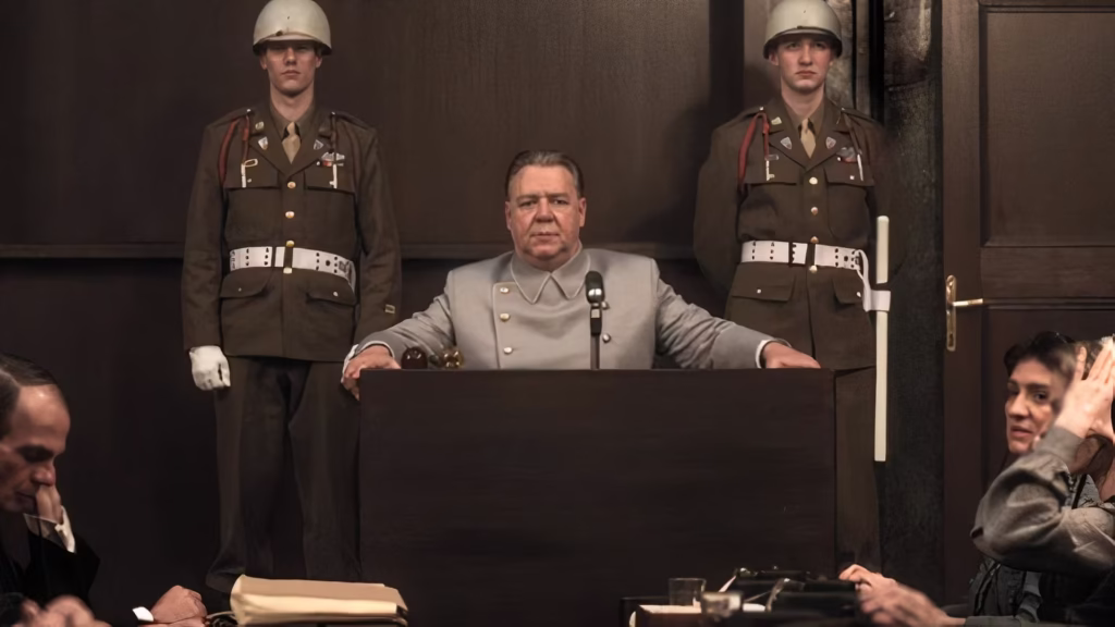 - Hermann Göring (Russell Crowe): Crowe, Göring’i hem tehditkar derecede karizmatik hem de manipülatif bir dahi olarak sunar. Göring, mahkemeyi kendi siyasi son gösterisi olarak görür; Nazi ideallerini savunmaktan geri durmaz ve Holokost sorumluluğunu reddeder.