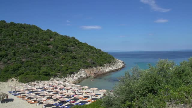 Makryammos Beach: Buraya Makryammos Bungalows denen bir tesisin içinden ulaşabiliyorsunuz. Girişinde paranızı alırlar. Kişi başı 3 €. Bu son derece makul bir fiyat ama bunu bu son gidişimizde şemsiye ve şezlonga dönüştüremedik. Yani sahil enfes kere enfes bakın çok yüksek mertebeden tavsiye ediyorum denizi. İnanılmaz güzel. Ancak 5 yıldızlı tesis çalışanları hafif artizlik yaptılar. Private place filan dediler. This umbrella belongs to someone vs. Oysa bir önceki gidişimizde (geçen sene) gayet güzel yaymıştık. Ha gene de olsun onlar gelene kadar biz buraya çöküyoruz derseniz de bir şey diyemeden gidiyorlar. Tesis genel olarak çok başarılı. Şimdi seneye diyelim gene gittim Thassos’a. Bu plaja gider miyim? Giderim arkadaş. Tam şimdi googlayın bakın hele bir denize, ben beklerim sizi.